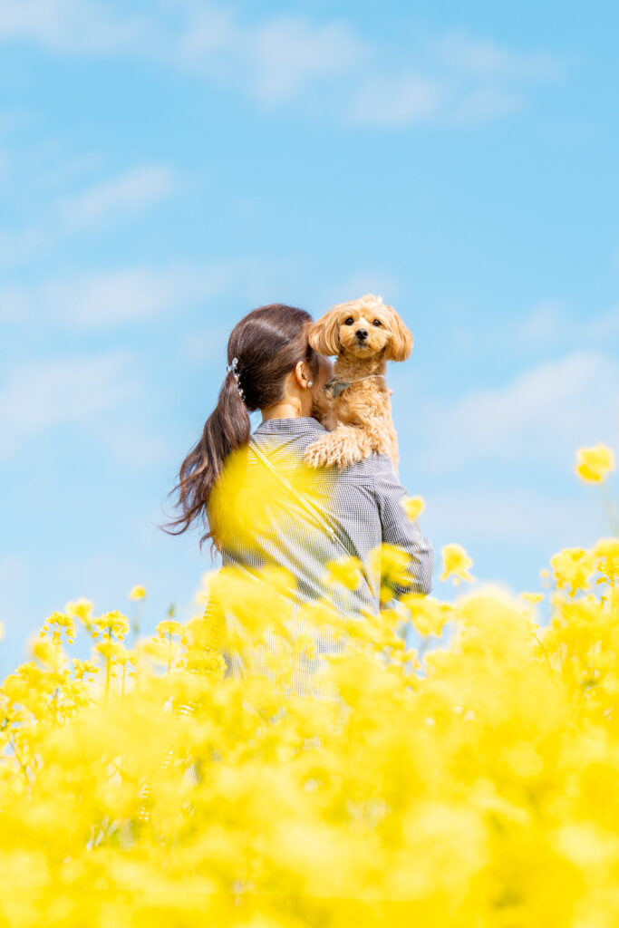 撮影を手がけたのは、埼玉を拠点に活動するプロのカメラマン「ワンシャッター」さん。飼い主さんは前年、ご自身で同じ花畑での撮影に挑戦したものの、なかなか思うような写真が撮れなかった経験があったと言います。「前の年に自分でも撮りに行ってみたんですけど、全然うまくいかなくて。やっぱりプロは違うなと実感しました」